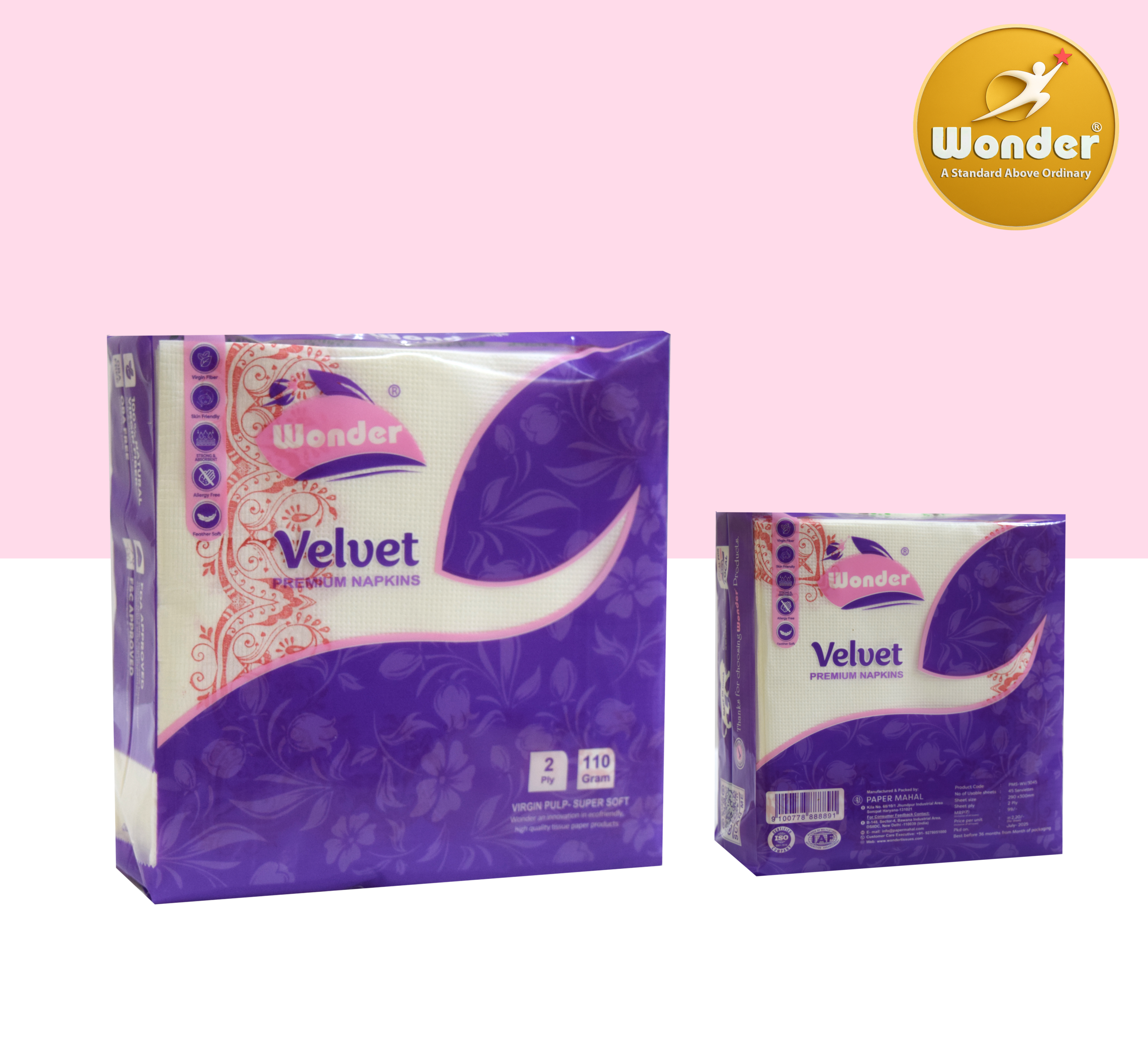Velvet 45 Border Tissue Napkins are created from pure soft papersoft and silky. When you use them, you will experience the best that a restaurant can provide. The beautiful border pattern not only accents your table but also the 2-ply composition at the same time, granting you the strength and absorption demanded both for regular use and special days.